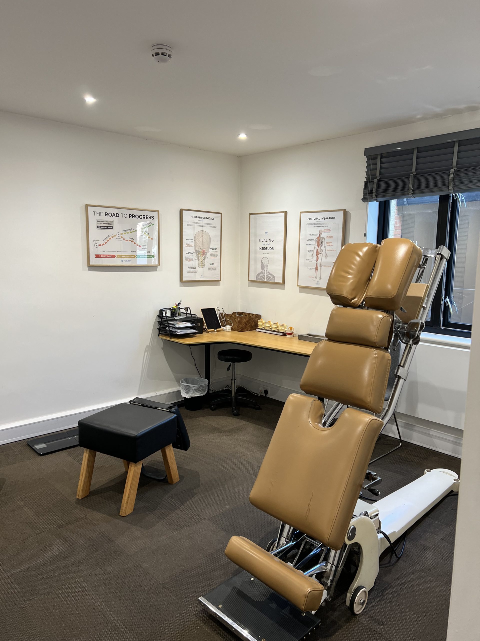 • Cervical Chair – This chair allows for highly precise neck and upper thoracic adjustments, keeping the spine in a neutral, upright, weight-bearing position, closely mimicking how the body functions in daily life.