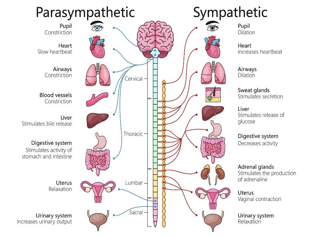 - Parasympathetic Nervous System (PNS): Rest and heal